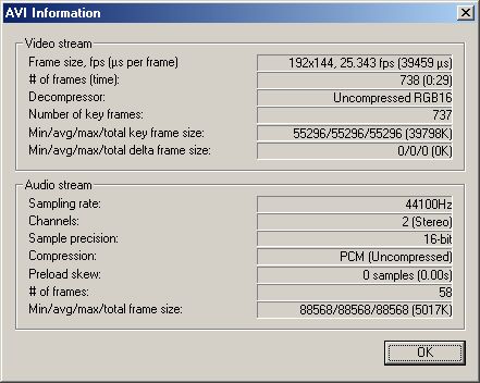 As above, a large AVI file for 29 seconds of video. If I had captured it at its highest rate and at the best quality of sound, you can imagine the size of the resultant file.