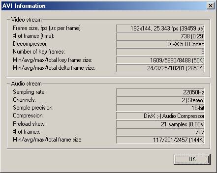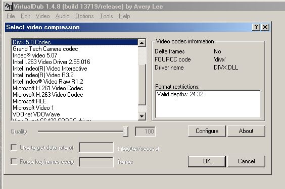 OK, lets change it to something that makes it a bit smaller. I downloaded the Divx5.0 bundle from Cnet, so lets see how that performs.