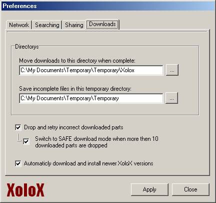 As per usual, you also get the chance to say where you want your downloaded files to reside and also where the part files are stored until they complete. You can also switch off the automatic updating of Xolox, and with the recent furore over Morpheus and their updates, this may be no bad thing.