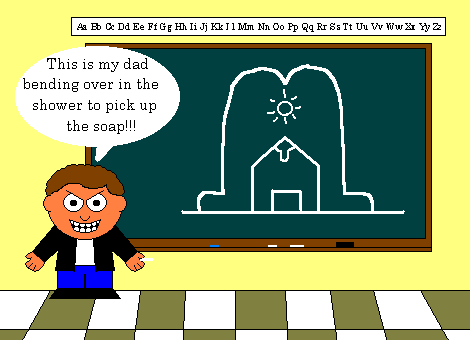 About this time, little Brian began waving his arm hysterically. Little Brian was well known for being dirty-minded, so the teacher was reluctant to call on him for anything. But as the teacher looked at the picture on the chalkboard, she thought that there was no way that little Brian could possibly do anything to make this picture dirty. So she called on little Brian, and he ran to the chalkboard.