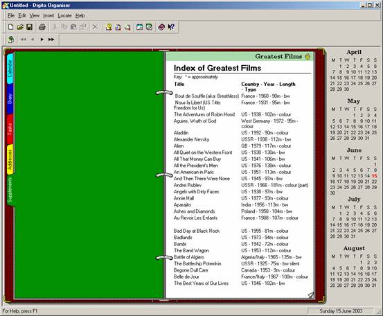 Organiser is exactly what it says, a computer equivalent of a filofax.