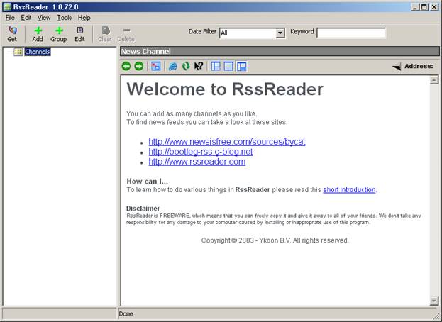 You don't need to manually add the channel at all. If your news channel has a XML button or RSS button, clicking on it while RSS reader is running will add it automatically.