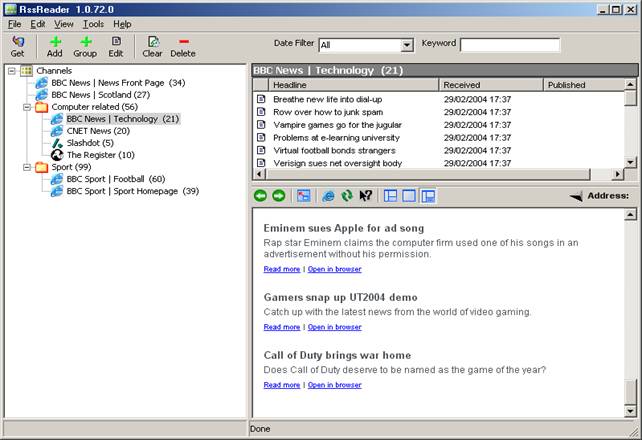 I had a quick look on CNet and found a reader (free,of course) that handles this painlessly.
