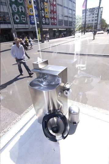 Here's a picture of a public toilet in Switzerland that's made entirely out of one-way glass. No one can see you in there, but when you are inside, it looks like you're sitting in a clear glass box.
