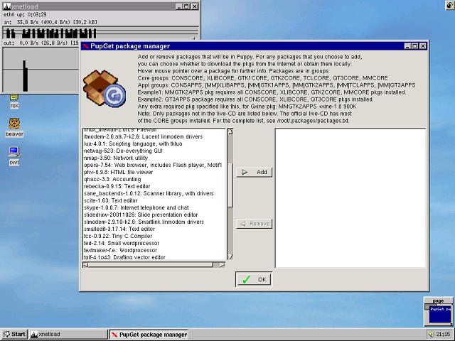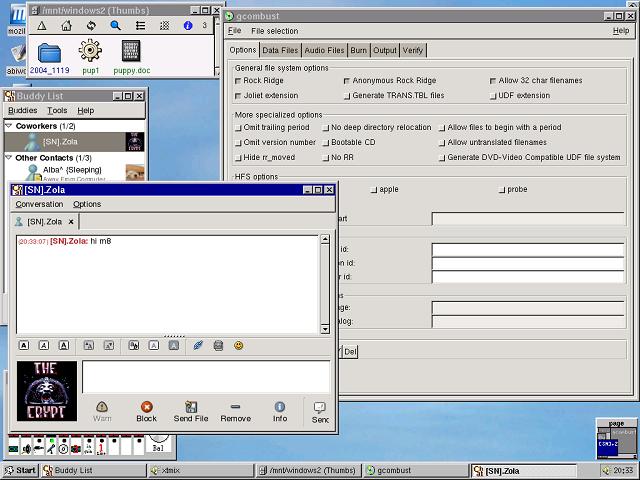 Some prefer using Messenger, Yahoo or one of the other clients. Puppy takes care of that particular need with Gaim.