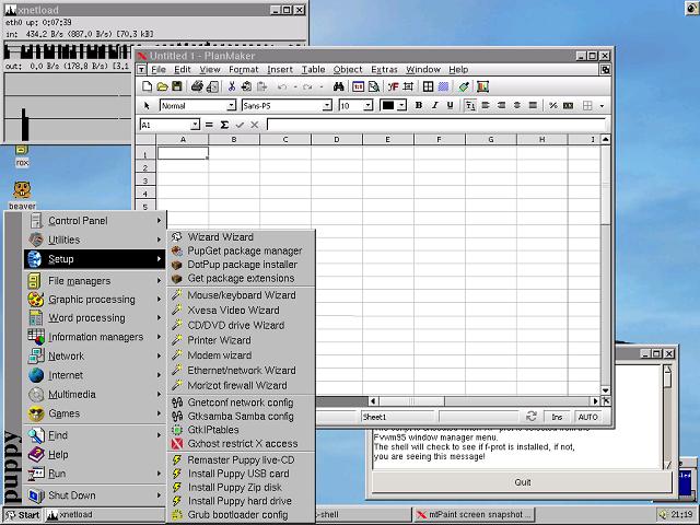 Puppy has lots of easy ways to configure your machine to run with the distro as well. Wizards are present on the menu for most things, even allowing you to remaster the Live-CD.