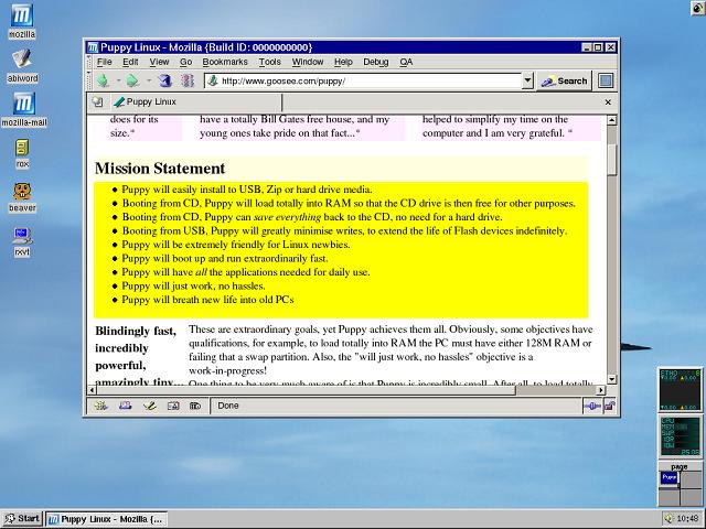 If you fancy a try at a very small distro that won't take long to download, or one that you can take around with you on a cheap usb memory stick (remember even a 64mb one is big enough to hold Puppy), this is one of the main candidates.