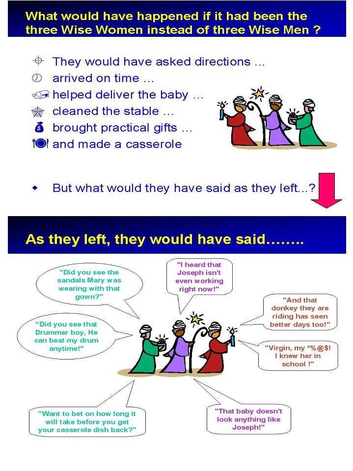 What would have happened if the three wise men had been women? We let the picture explain it all!