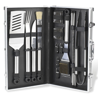 Containing a fork, spatula, tongs, basting brush, knife, cleaning brush (with extra heads for sanitary reasons), skewers, and corn holders these insulated handle, stainless steel, easy to clean tools will make you want to get out there and slap something on the BBQ!