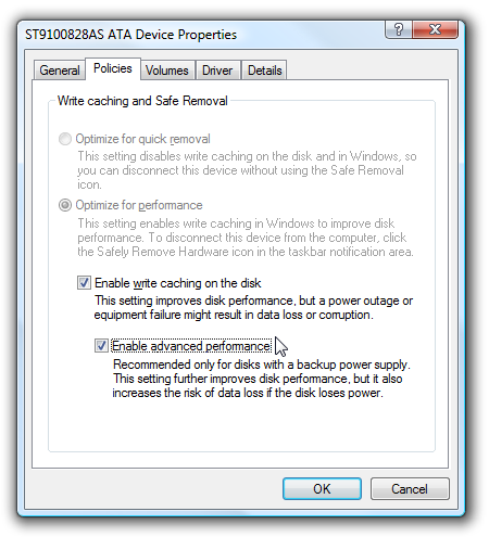 Windows Vista has built-in support for Serial ATA(SATA) hard drives, but it doesn't automatically enable advanced write caching features. You can speed up your computer by enabling this mode in the Device Manager.